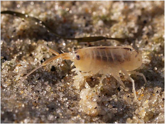 C'est une des espèces de crustacés typiques des voisinages mer-terre, l'un des très rares crustacés inféodé aux parties supérieures des estrans sableux à laisses de mer (même s'il nage très bien, il ne supporte pas une immersion prolongée dans l'eau de mer), et ayant développé de nombreuses adaptations à ces milieux changeants, notamment au rythme biquotidien des marées et au rythme lunaire des grandes marées. Il adapte également son territoire aux conditions climatiques. Il vit à l'air libre, mais à condition de disposer d'un minimum d'humidité, qu'il va rechercher en creusant dans le sable humide, sous le sable sec superficiel.